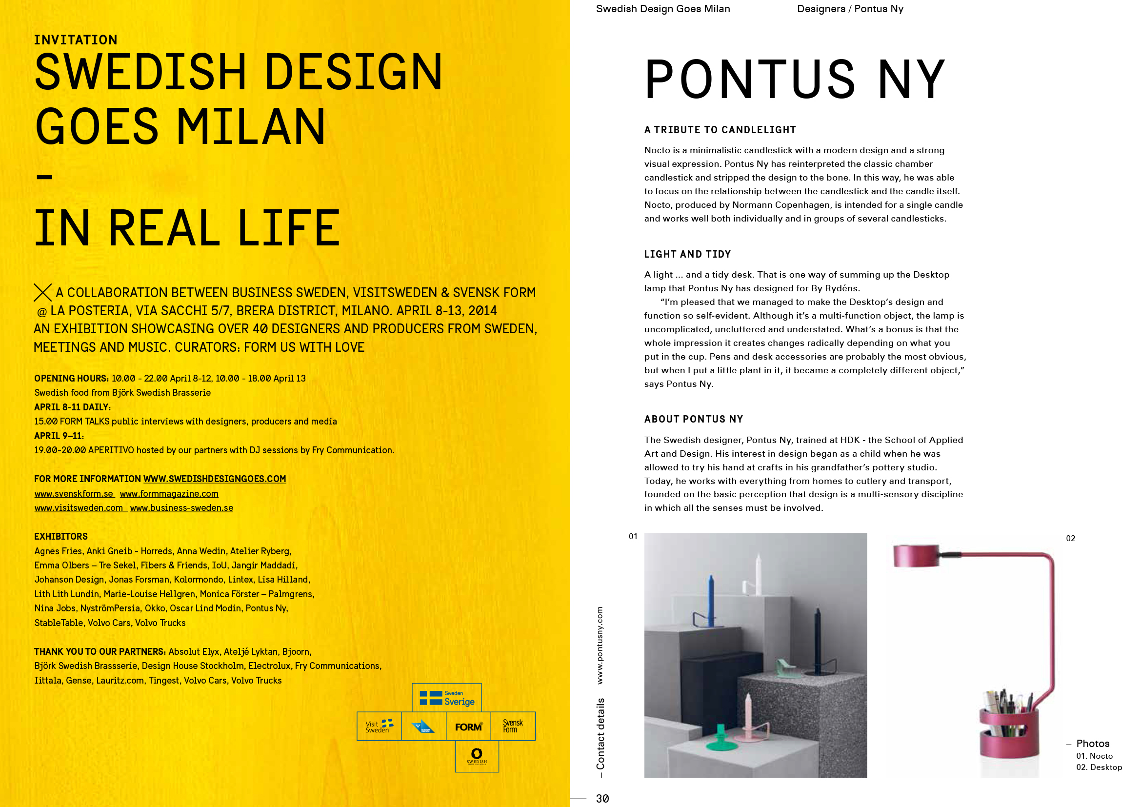 This year Swedish Design Goes Milan is moving into La Posteria in the Brera district, bringing some 40 Swedish designers and companies to give a broad images of what goes on within Swedish design today combined with talks and presentations in an atmosphere of an Swedish food and music and a special area created for business meetings or a Swedish snack.