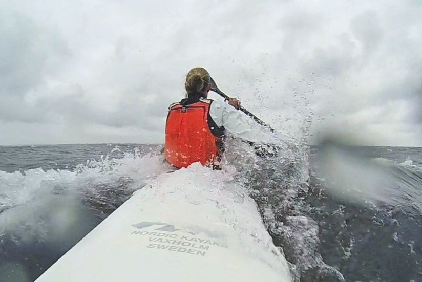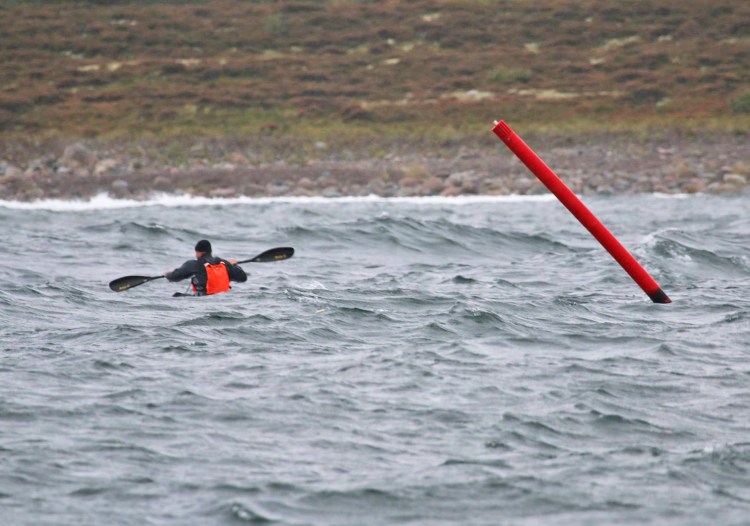 I en surfski är sidvinden inga större problem. På en SUP utan roder är det däremot ofta stora problem. Mycket stora dessutom om vinden toppar 14 m/s som den stundtals gjorde under lördagen. (SUP-brädan strävar envist att rotera kring den fast monterade fenan, nosen trycks alltså ner mot lä. I stark vind innebär detta att ståpaddlaren får lägga väldigt mycket energi på att styra upp brädan mot vinden genom paddling på ena sidan. Har man dessutom envisa vågor som trycker på från sidan, så är denna typen av paddling problematisk. Måttlig vind är dock inga problem, och vardagsmat för oss ståpaddlare).