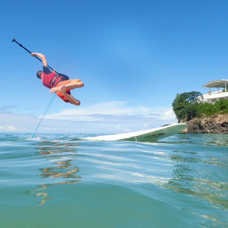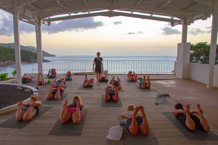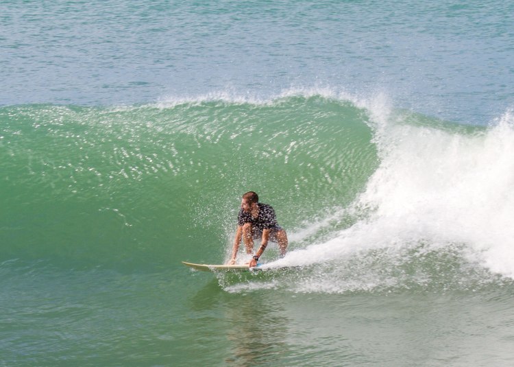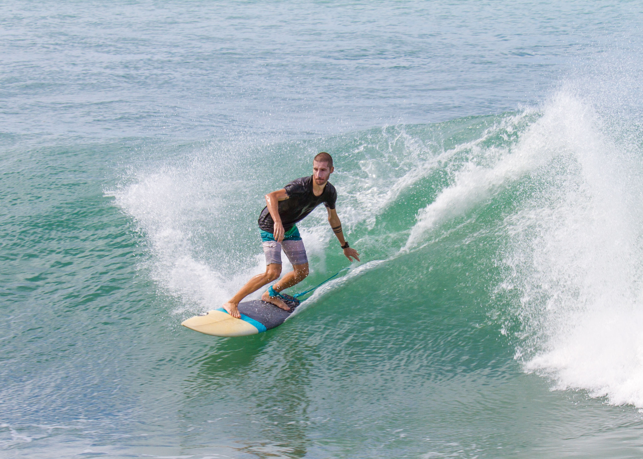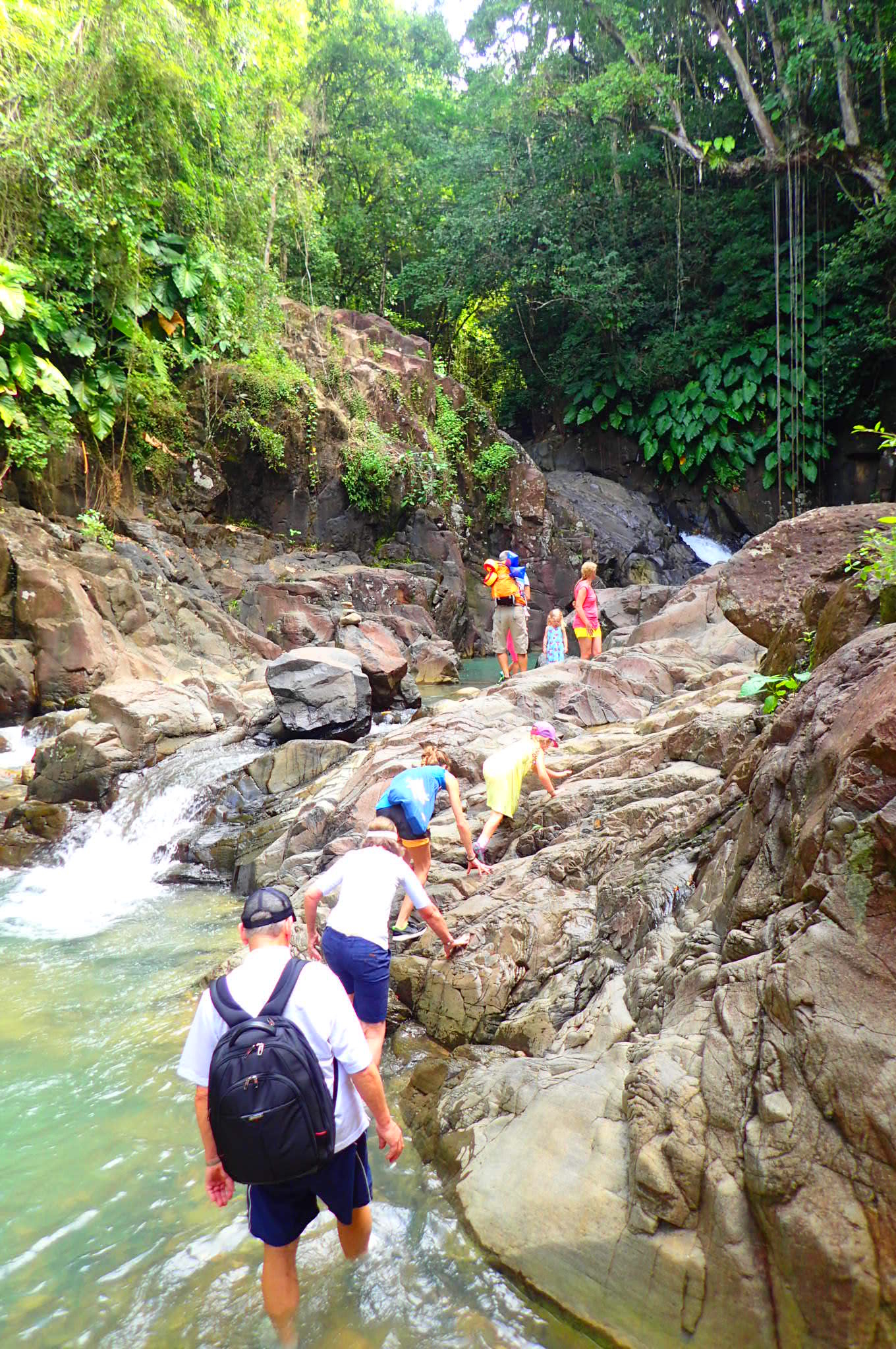 En av våra exkursioner i skogen med Maria som guide bjöd på bad i den här källan med flödande vatten från regnskogen.Härligt SUP-vatten endast ett brädkast från hotellet. (Yoga-terassen uppe i högra hörnet)Vill man bo i bungalows så finns den möjligheten också. (foto: Langley)