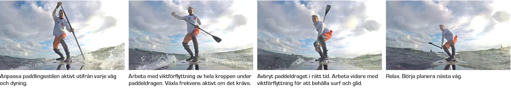 Det handlar också att avbryta paddeldraget vid rätt tillfälle. När brädan får surf, då har du positionerat dig rätt och behöver nu bara förvalta surfet samt sikta på nästa vågsystem. Men det dyker vi djupare in i nästa gång!