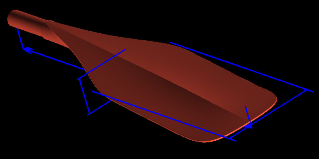 Vad som skett de senaste åren hos flera tillverkare är att man gått ner i storlek på vissa race-fokuserade paddlar, genom att man lyckats effektivisera bladets form. Effektiviseringen är såklart svårt att mäta på ett riktigt relevant sätt. (Ja, du kan köra dragtester i bassäng med motståndsmätare etc, och få fram vissa siffror som bekräftar. Eller mäta digitalt. Men enligt mig är det alltför långt ifrån hur ett verkligt paddeldrag påverkas av 1000-tals parametrar i händerna på en ståpaddlare. Vind, vågor, strömmar, isättningsvinkel, stil och brädans påverkan, etc. Slutprototyper i verkligheten med analys, viss mätning och erfarenhetsbaserad vetenskap kommer ofta närmare målet).