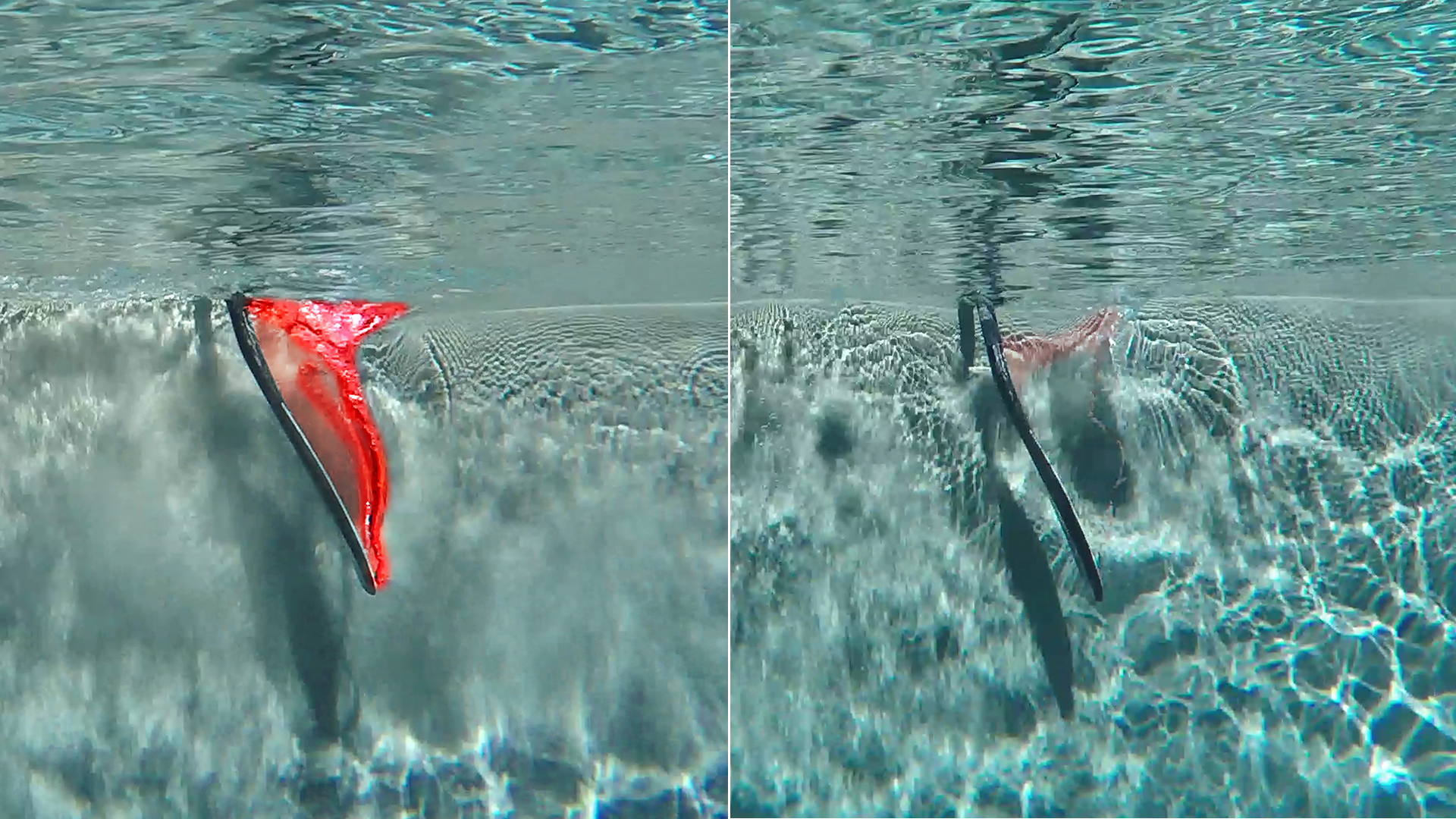 Kom också ihåg att vatten i princip inte kan flexa eller komprimeras, utan bara flyttas. Det innebär att ett blad som inte fäster i vattnet, istället flyttar undan vatten. När man egentligen vill flytta brädan. Så flexen, oavsett varifrån den kommer, är främst till för att få bättre grepp och sedan rikta energi. Vi brukar kalla det en form av ”traction control” som man har på bilar till att dosera greppet för att undvika att slira loss.