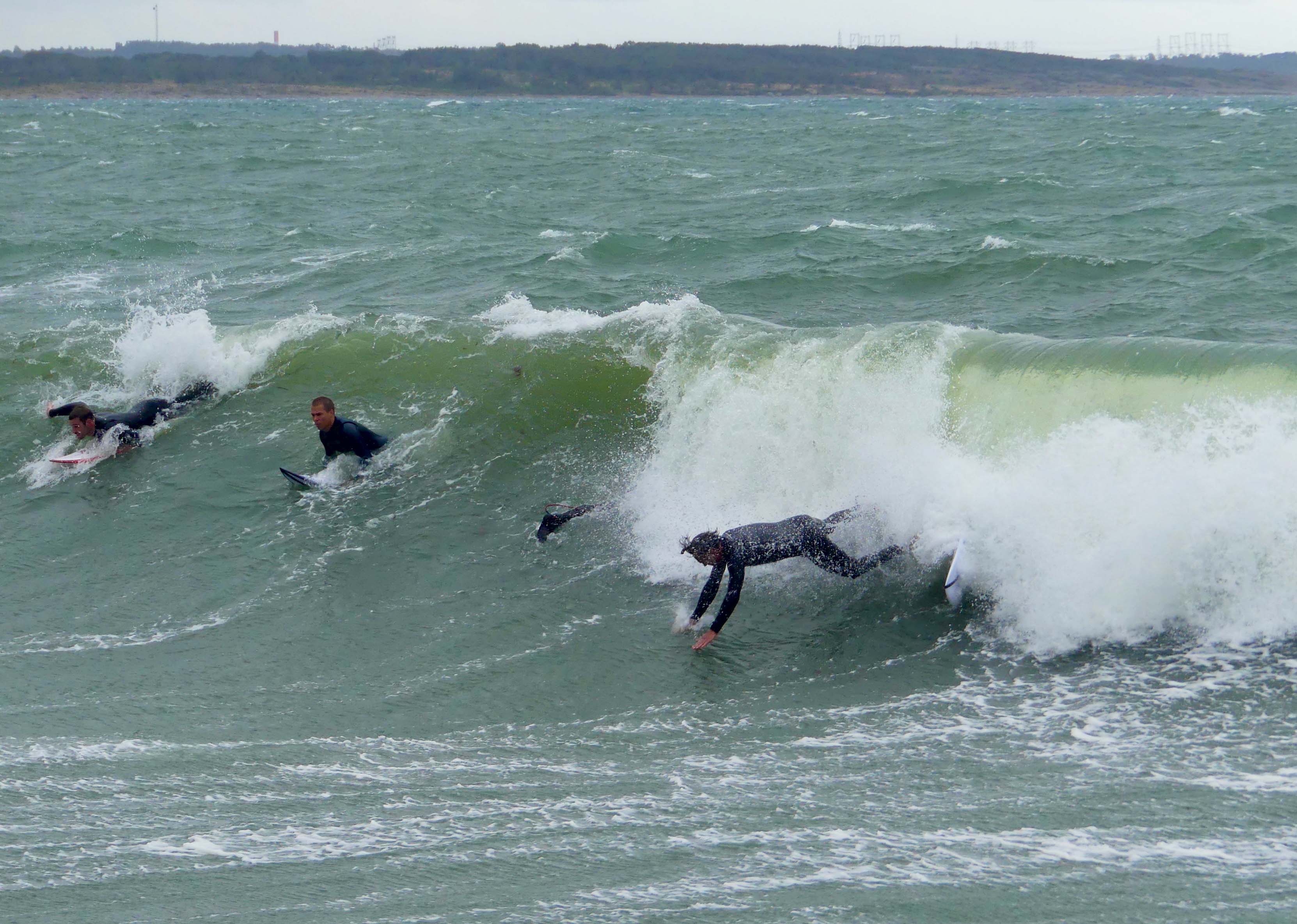 Downwind handlar mer om att använda dyningar. Dessa bryter delvis också, men inte lika brant och lika tydligt. Ibland bara lite på toppen.