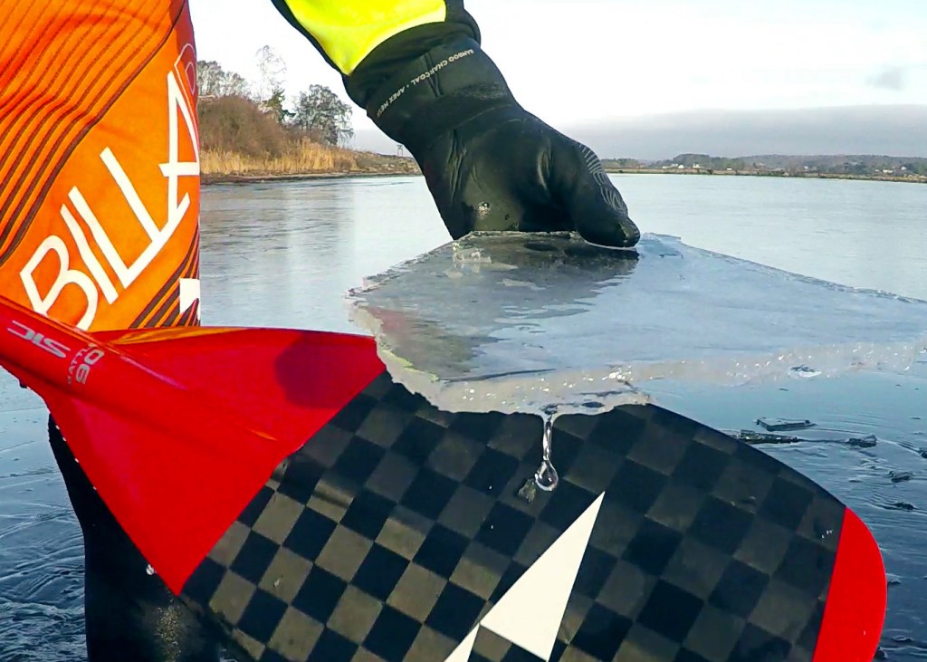 Däremot blir du mycket nedtyngd av vatten när du skall försöka ta dig upp på brädan igen. Vilket i kombination med kallt vatten såklart skapar en problematisk situation.