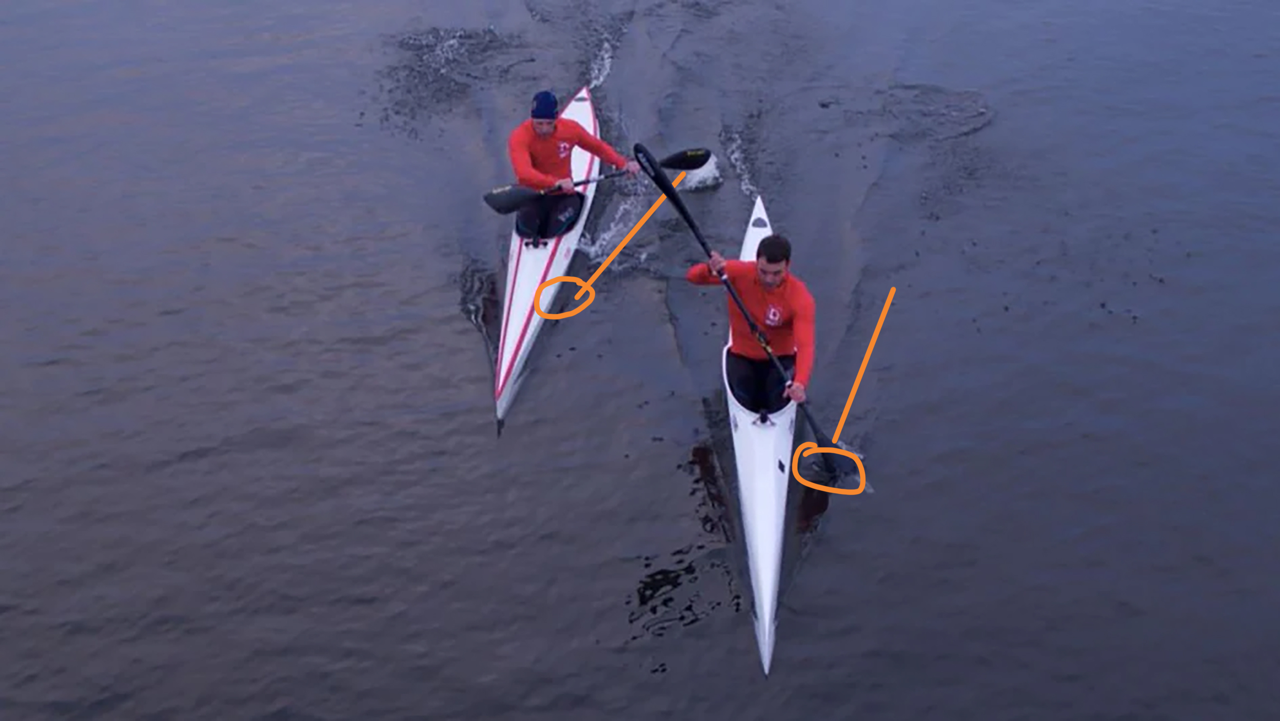 The asymmetric shape of the wing paddle, which makes it work best in a non-linear path along the hull, shows how design can “program” a paddle’s path in the water. (Asymmetric shape mainly refers to the cross section of the blade. And by non-linear path along the hull, we mean how the wing blade is designed to travel diagonally out from the hull.)