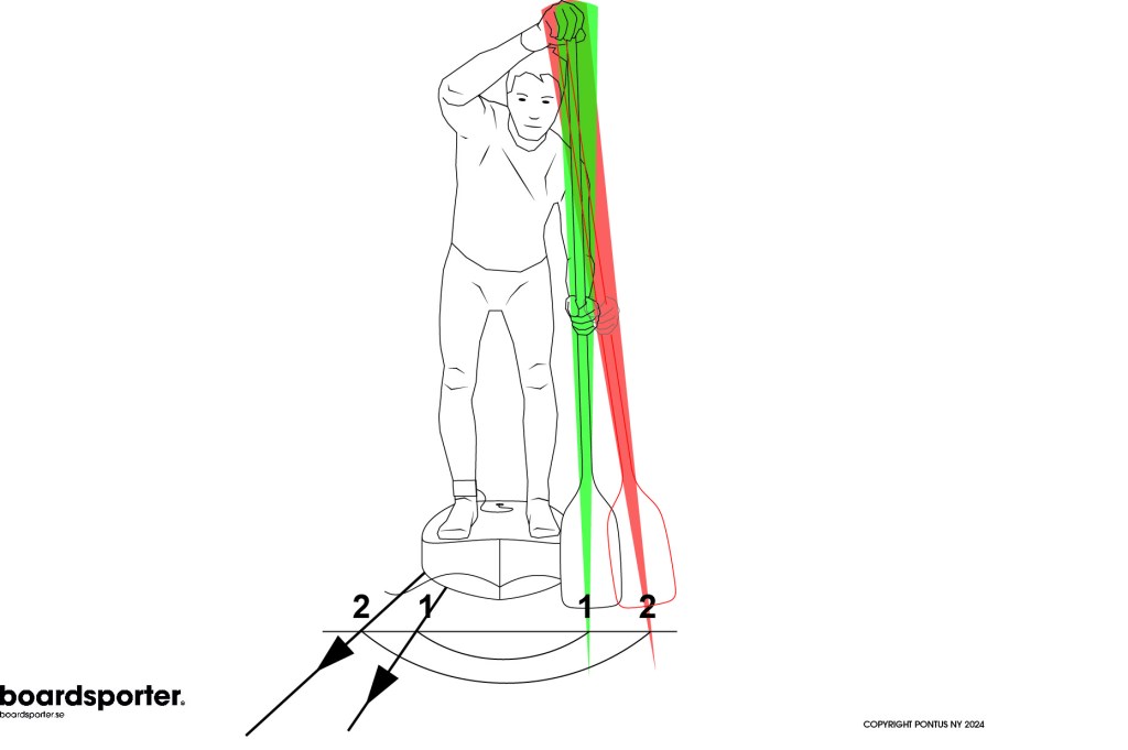 On a SUP-foil it’s desirable to create a force with the paddle that both gives speed and lift, but also prevents the board from turning. This applies to most SUP disciplines, but becomes extra decisive on a foil-board.