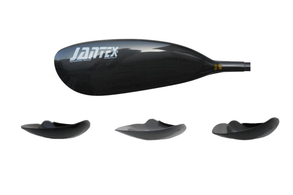The asymmetric cross-section makes one half of the blade slightly offset, which means that the blade more easily takes a non-linear path during the paddle stroke. Starting a bit out from the front of the board, towards the paddler’s body. But still in a straight and powerful path.